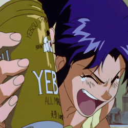 Misato che beve la sua birra preferita